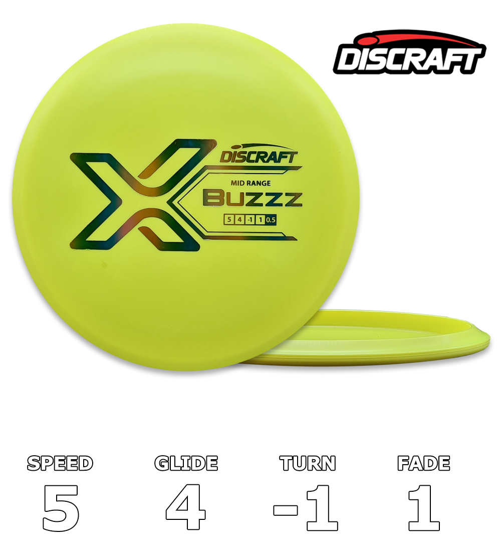 Buzzz er Discgolfs mest populære mellemtone på grund af dens ensartethed og kompatibilitet med en bred vifte af spillerstile. Buzzz er en lavprofileret moderne mellemtone, der er guldstandarden for direkte til stabile bolde, som spillere kan stole på.