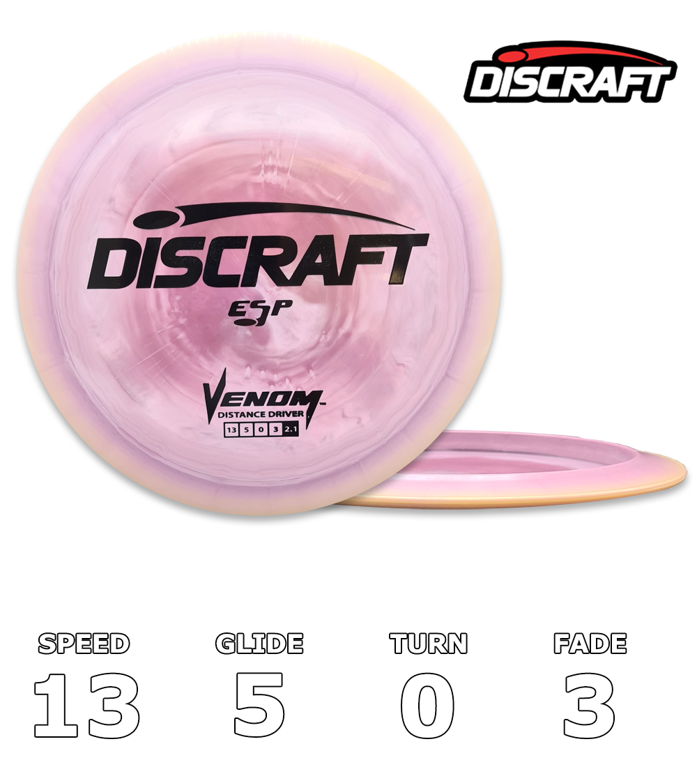 Sæt dine hugtænder i den helt nye Venom. Denne fuldstændig omdesignede disc er kommet for at blive. Derfor har vores team taget alt, hvad der virker (og intet, der ikke gør) fra den tidligere Venom for at give dig en gentænkt, konsistent og overstabil driver til maksimal distance. Denne tilføjelse til vores sortiment opfylder et behov i mange spilleres tasker og vil blive en favorit blandt powerthrowers og dem, der leder efter en pålidelig driver til distance.