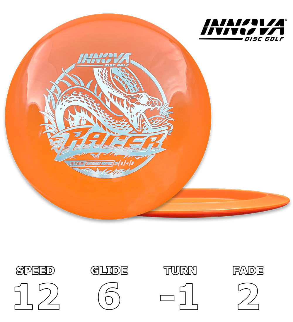 The Racer is a fast, stable long-range driver designed for players seeking maximum distance with a smooth fade. It offers performance similar to a seasoned Destroyer, making it ideal for those with max distance under 450 feet (137,1 m). The Racer provides excellent torque resistance, suitable for both sidearm and backhand drives.