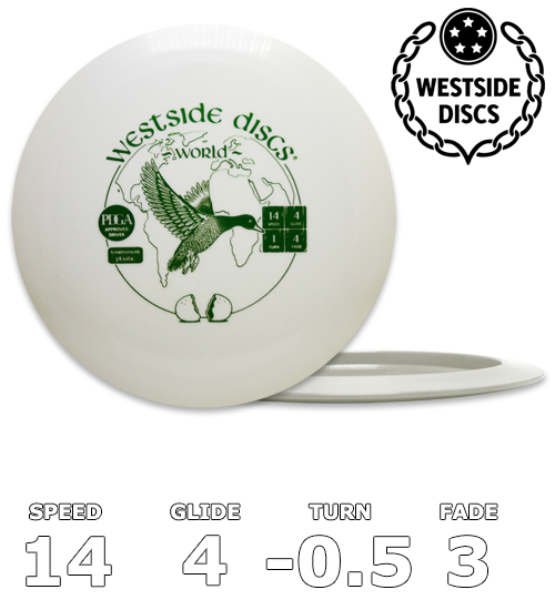 The World is our fastest high speed driver. Designed as a distance driver the World gets there fast and flies great close to the ground. It has a low profile and a great feel. For professional players it is the fastest disc on the market that holds a hyzer line for anyone. For lower speed arms the World will be the disc in your bag that is over stable and fast in all conditions. You can count on the World to get you further down the fairway right away.