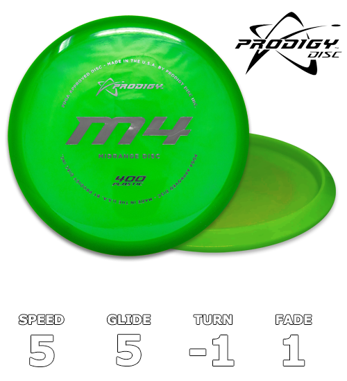 Prodigy Disc M4 er en ekstremt pålidelig, let understabil mellemtone-disc. Den er designet til alle spillere og flyver ekstremt langt for en mellemtone. M4'eren vil vende opad, når den kastes hårdt, og vil derefter have en ekstra lang glide og en blød, lige afslutning.