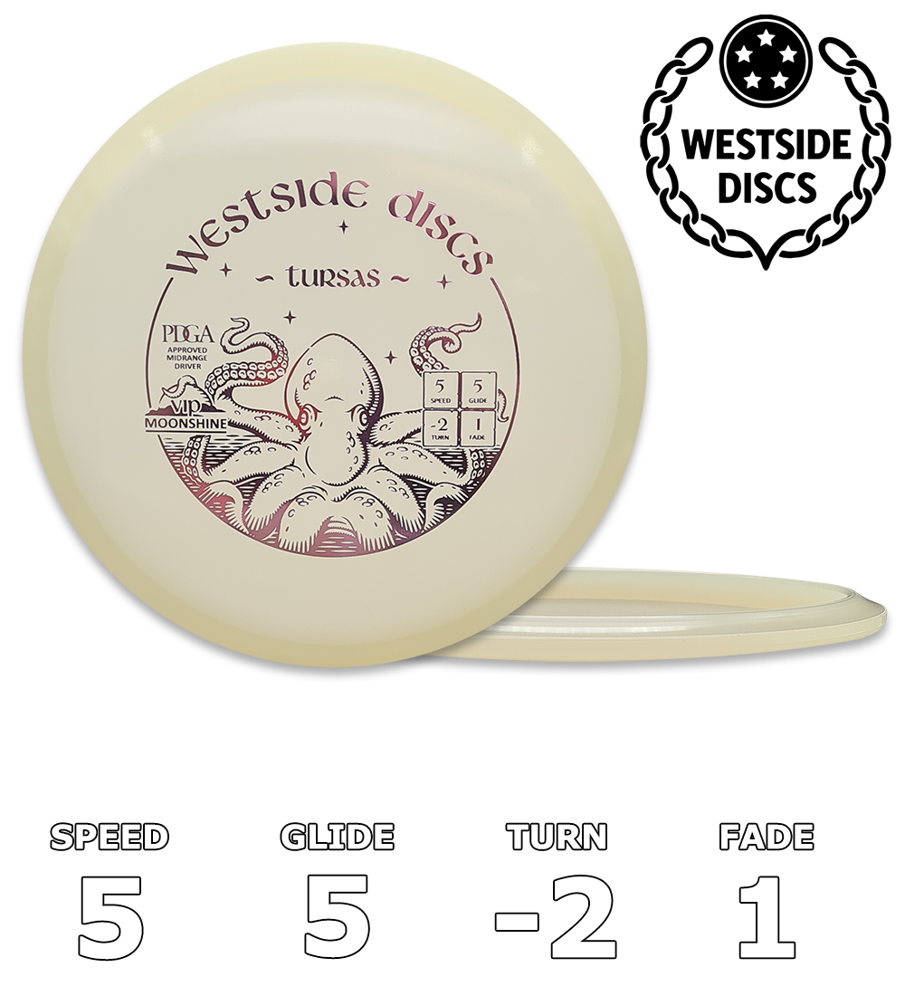 Tursas er Westsides mest kontrollerbare discgolf i mellemklassen. Designet med hverdagsspilleren i tankerne, vil Tursas gøre det sjovere at spille discgolf. Den burde give dig mulighed for at lave en mellemklasse-anhyzer, mens du lærer at spille. Fantastisk til damer og børn, da den har et mere overfladisk greb end de fleste mellemklasse-spillere på markedet. For professionelle spillere er den en fremragende mellemklasse-anhyzer. Til arme med lavere hastighed vil den glide ligeud, så længe den er i luften.