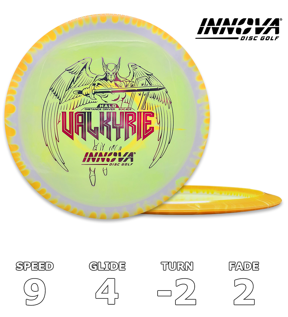 Halo Star is Innovas latest high-performance polymer innovation, offering maximum durability and brilliant appearance. The novel two-tone injection process results in beautiful, durable discs with a “Halo” rim that is a distinctly different color than the flight plate. Though every Halo Star disc has a unique look, the runs are extremely consistent, so you can trust two Halo discs of the same mold to have the same flight characteristics every time.