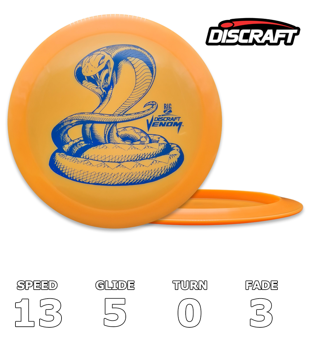 Sæt dine hugtænder i den helt nye Venom. Denne fuldstændig omdesignede disc er kommet for at blive. Derfor har vores team taget alt, hvad der virker (og intet, der ikke gør) fra den tidligere Venom for at give dig en gentænkt, konsistent og overstabil driver til maksimal distance. Denne tilføjelse til vores sortiment opfylder et behov i mange spilleres tasker og vil blive en favorit blandt powerthrowers og dem, der leder efter en pålidelig driver til distance.