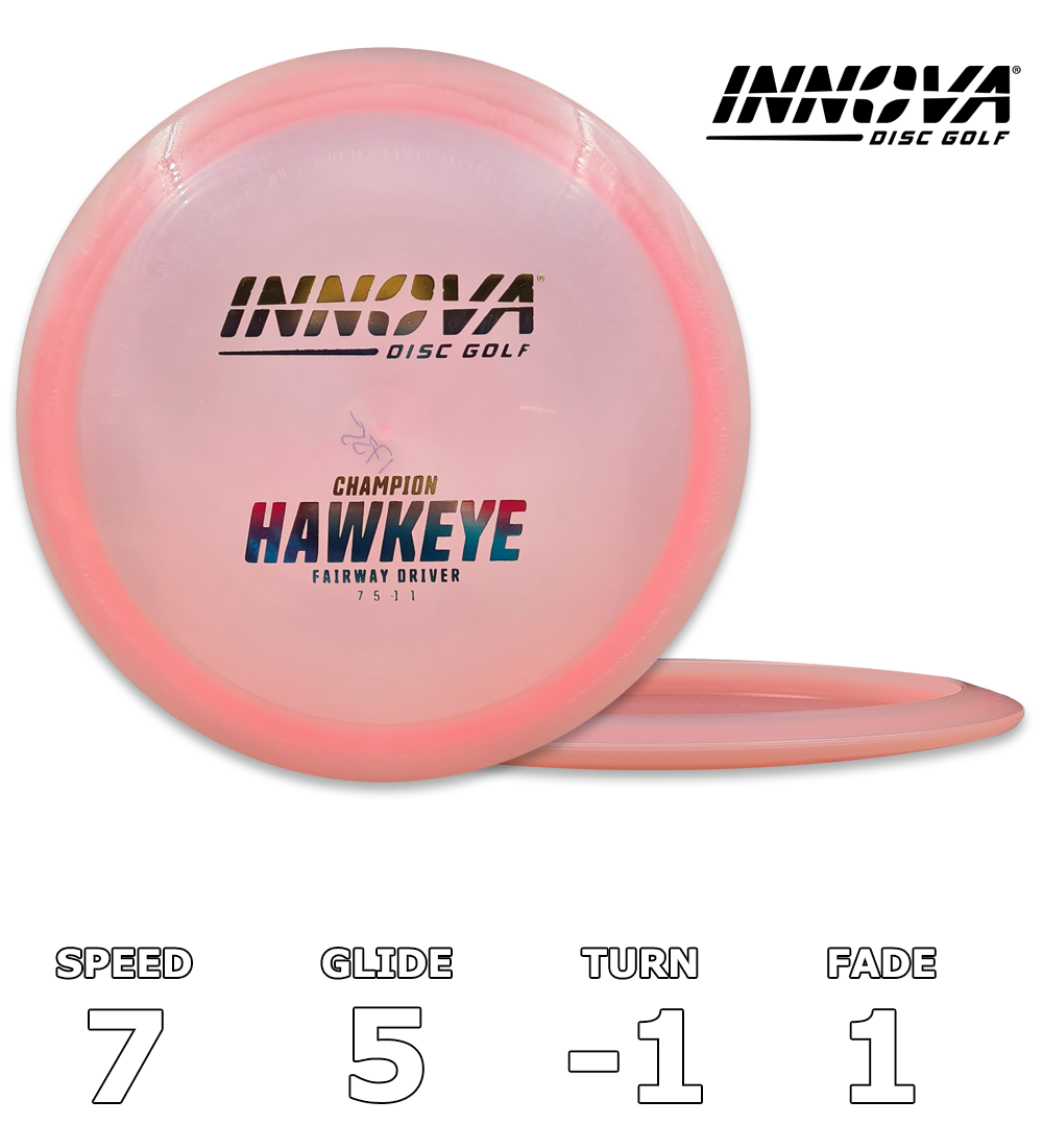 Innovas Champion line is produced with a hi-tech plastic that provides outstanding performance and durability. Champion discs are distinguished by a beautiful clear appearance. Designed for professional players, Champion line discs are usually a little firmer and more stable than the same model in other plastics. Whether used in heavily wooded situations, or on extremely rugged courses, Innovas Champion line plastic will continue to perform predictably and avoid damage better than any other plastic. Most Champion line discs are available for custom hot stamping.