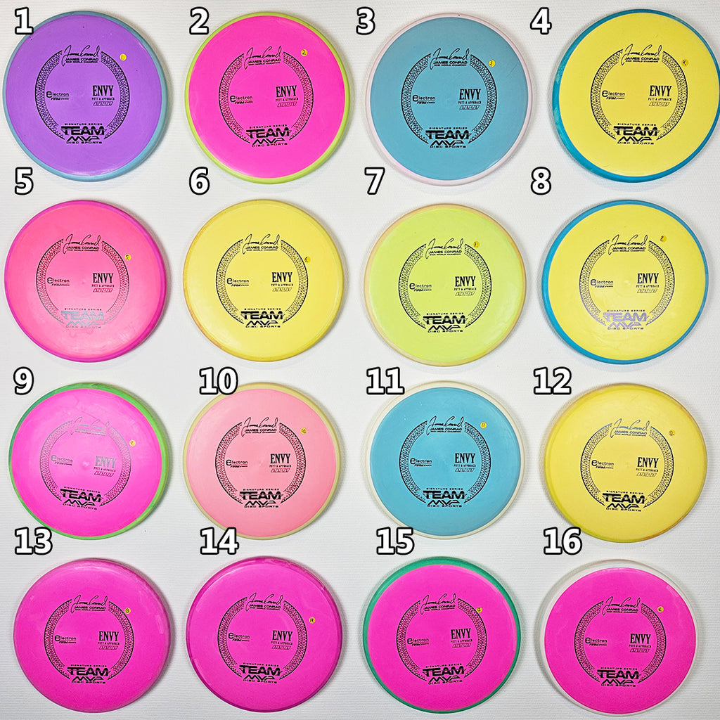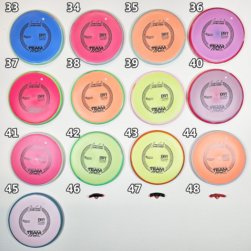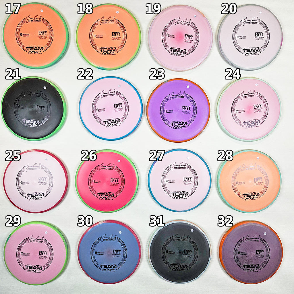 Envy har en blød, moderne følelse, der ligger perfekt i hånden og giver tryghed til både putt og approach. Envy udviser pålidelig stabilitet ved høje hastigheder og minimal fade. Med en lidt lavere profil og marchhastighed end Ion- og Anode-klassen er Envy en unik "låglignende" stabil putter.