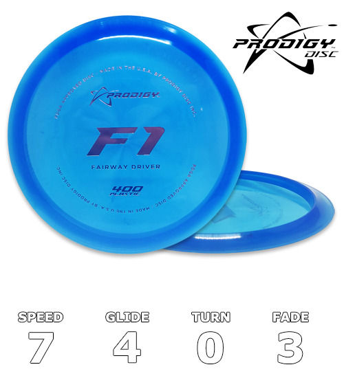 Prodigy Disc F1 er en medium hastigheds, betydeligt overstabil fairway-driver med meget forudsigelige og kontrollerbare blæsebaner og en stærk afslutning. Den er designet til power-throwers. Denne disc er også et fremragende valg til tommelfinger- og tomahawk-slag.