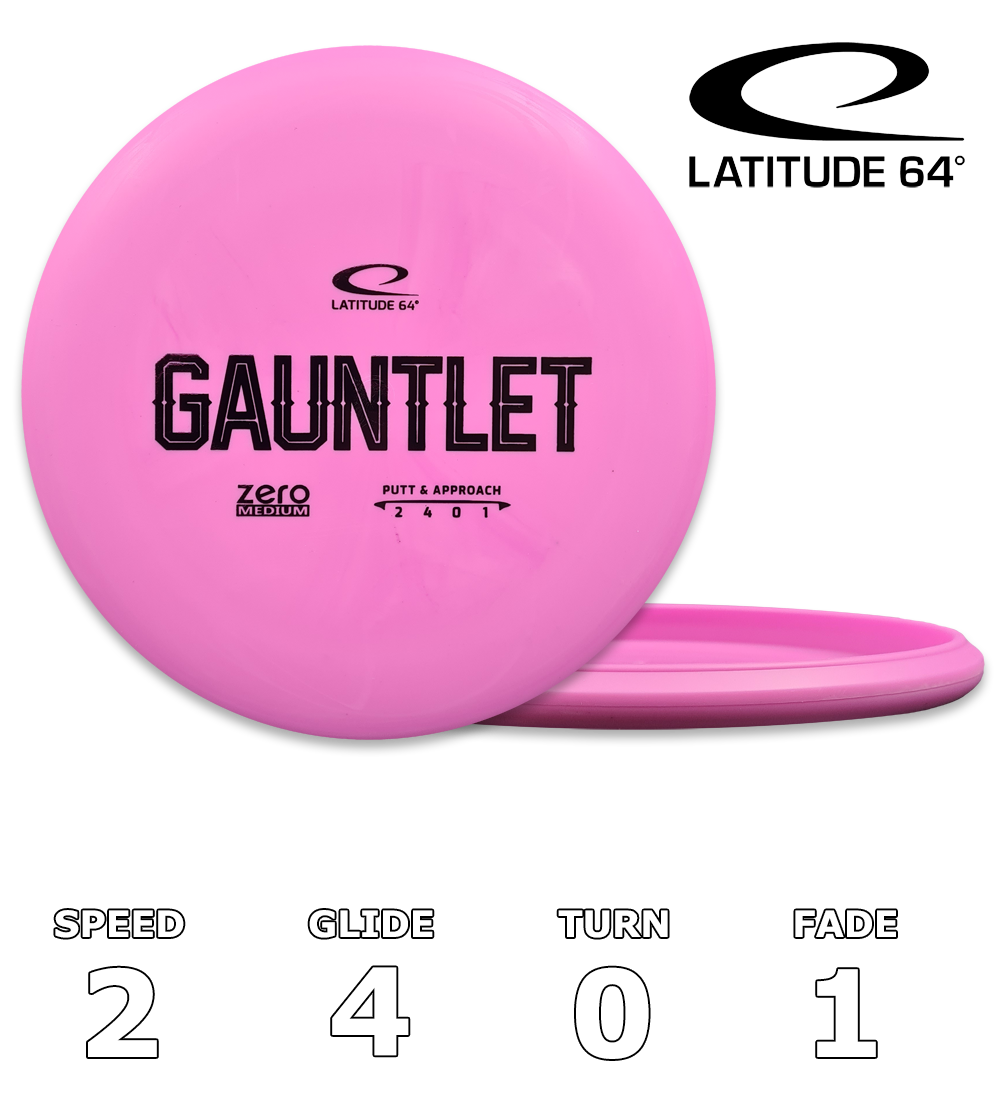 Leder du efter en pålidelig putter med stabilt boldflugt? Så er det tid til at udfordre banen med Gauntlet. En højprofileret putt- og approach-disc med en beaded kant, godt glide og stabil flyvebane gør den til et praktisk våben i enhver taske.