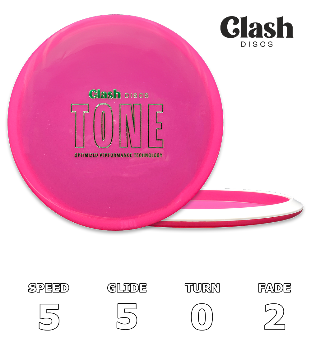 The bottom of the rim is made of the stiffer plastic, which makes the disc very torque resistant. The top of the disc is a very grippy premium plastic mixture, which guarantees the best possible feel when throwing in any conditions. TONE technology combines the best properties of two different plastics in a completely new way with 3-dimensional appearance. This additionally accelerates the disc's spin speed during throws. All these elements collectively enhance the disc, unlocking its peak performance potential.