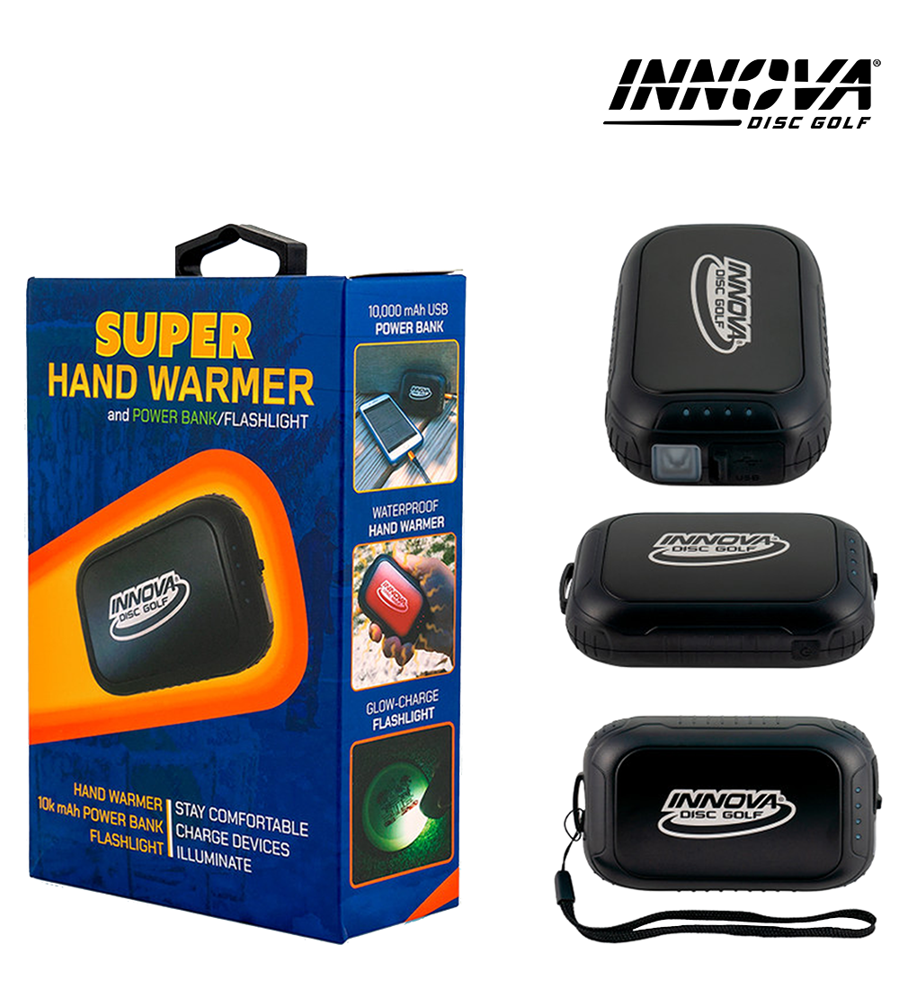 Den ultimative discgolf-enhed til køligere vejr! Hold den opladet og klar til brug, når vejret ikke er med dig. Fire varmeindstillinger fra Ahh til Wow - hold dine hænder klar til at kaste. Oplad din telefon, så du kan logge de mange birdies. Mister du noget? Lommelygten kan hjælpe. Du vil gerne have den i tasken året rundt.
