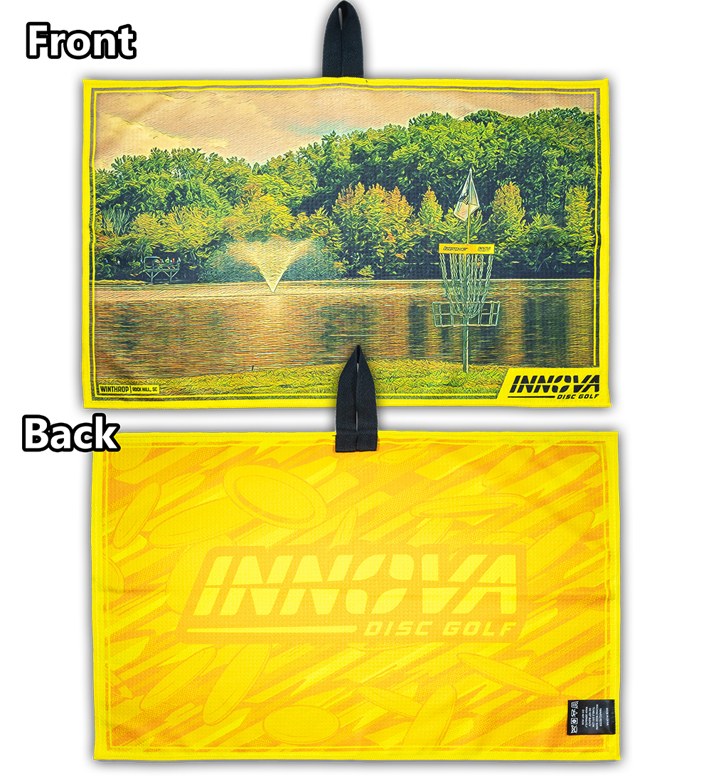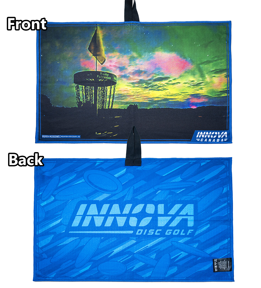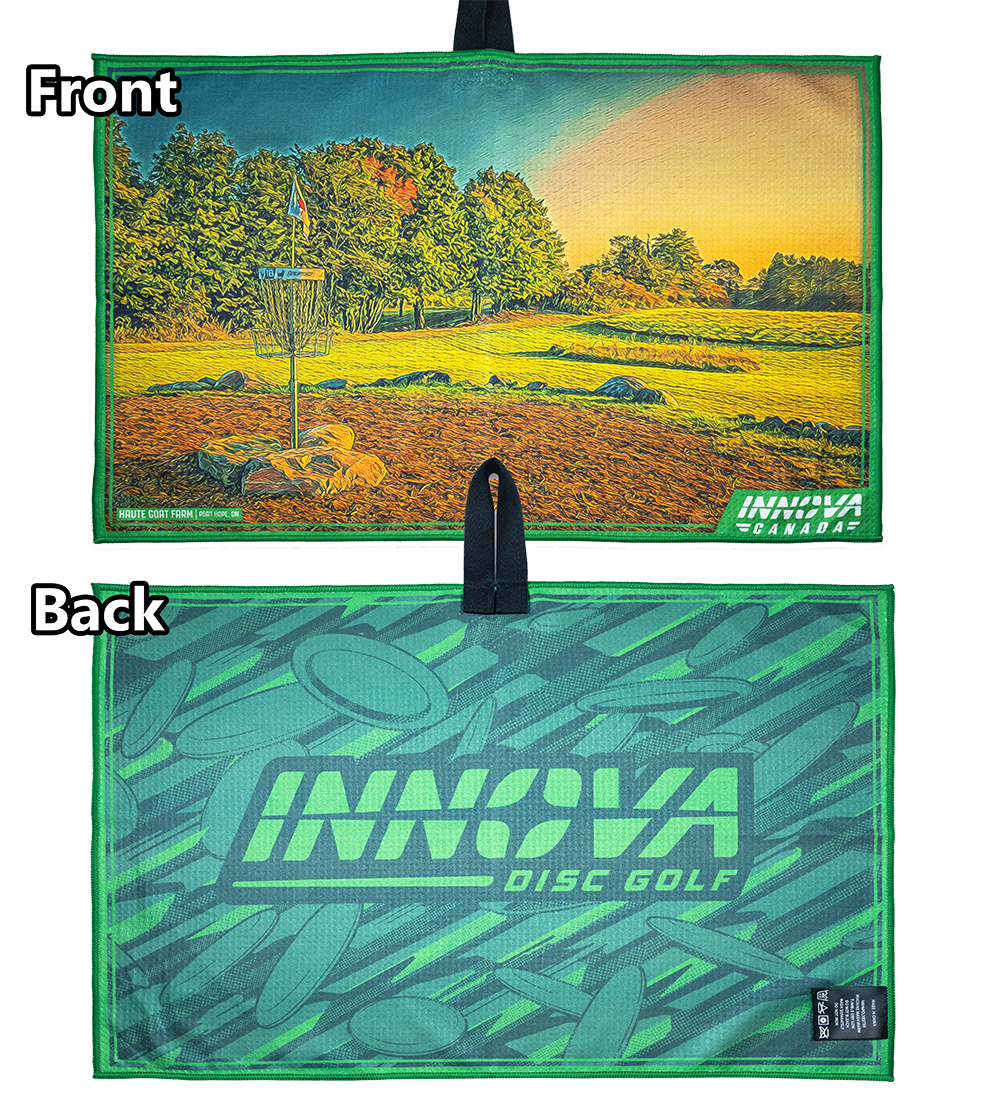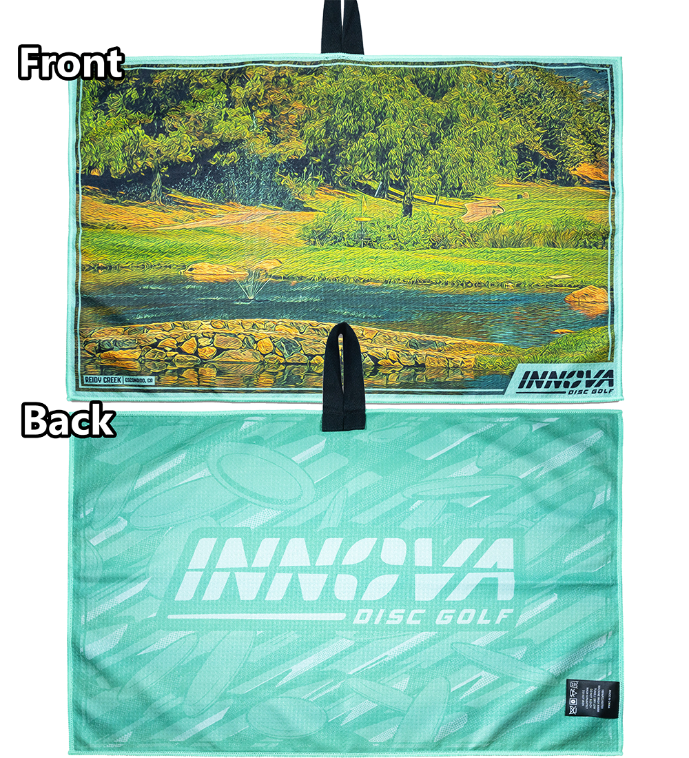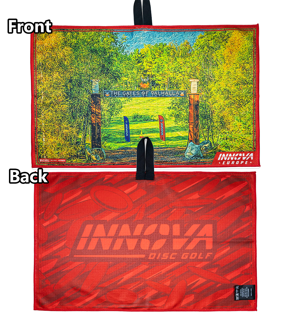 Farverige, store, absorberende. Tour-håndklæderne er lavet af 100% vaffelvævet polyester med et farvetryk i høj opløsning på begge sider. Der er syv nye designs til 2025, og hvert design har Innova-logoet med skiver på bagsiden. Stofløkken i midten af håndklædet gør det nemt at fastgøre det. Håndklædemål: 65 x 43 cm