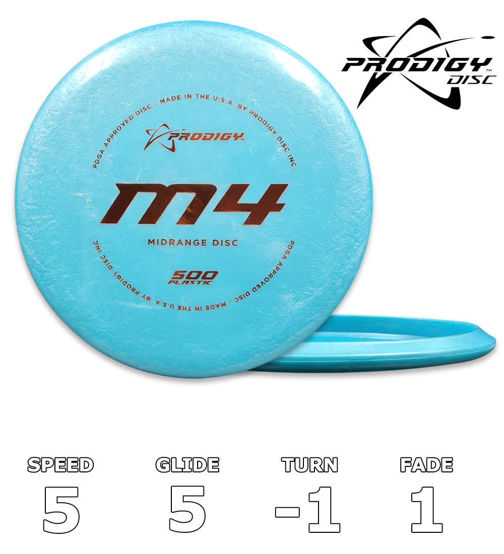 Prodigy Disc M4 er en ekstremt pålidelig, let understabil mellemtone-disc. Den er designet til alle spillere og flyver ekstremt langt for en mellemtone. M4'eren vil vende opad, når den kastes hårdt, og vil derefter have en ekstra lang glide og en blød, lige afslutning.