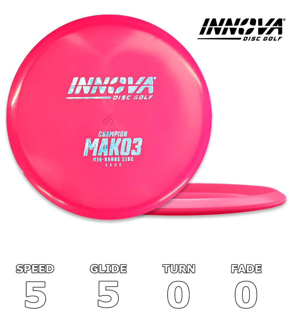 Innovas Champion line is produced with a hi-tech plastic that provides outstanding performance and durability. Champion discs are distinguished by a beautiful clear appearance. Designed for professional players, Champion line discs are usually a little firmer and more stable than the same model in other plastics. Whether used in heavily wooded situations, or on extremely rugged courses, Innovas Champion line plastic will continue to perform predictably and avoid damage better than any other plastic. Most Champion line discs are available for custom hot stamping.