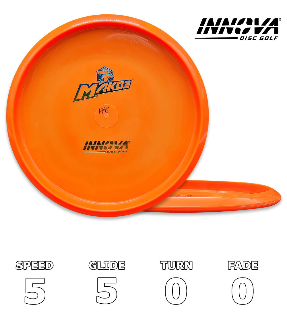 Denne mellemklasse-disc er den perfekte løsning for alle, der ønsker en lige flyer med meget begrænset fade. Mako3 fås i Champion-plastik, og den er hurtigere end den originale Mako. Spillere vil sætte pris på Mako3's glide for ekstra distance. Den lette greb og slip-muffe giver rene og ensartede releases. Mako3 er en fantastisk disc til runder med én disc.