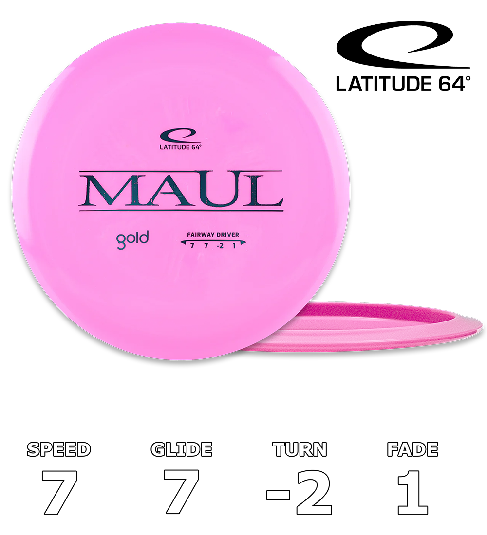 Maul er en fairway-driver lavet til turnover shots. Den ligner vores populære driver River i både hastighed og glide, men er mere ustabil. Denne disc er et rigtig godt valg for begyndere og amatører, da den er nem at kontrollere og gribe, og den vil ikke falme så meget som drivere med høj hastighed.