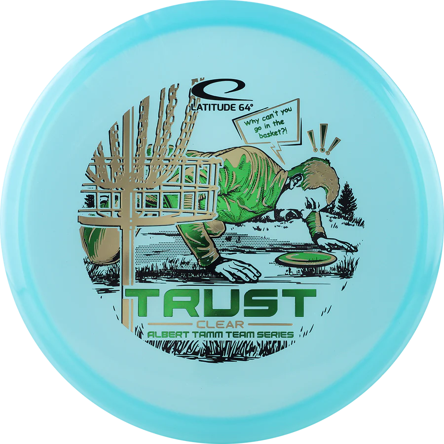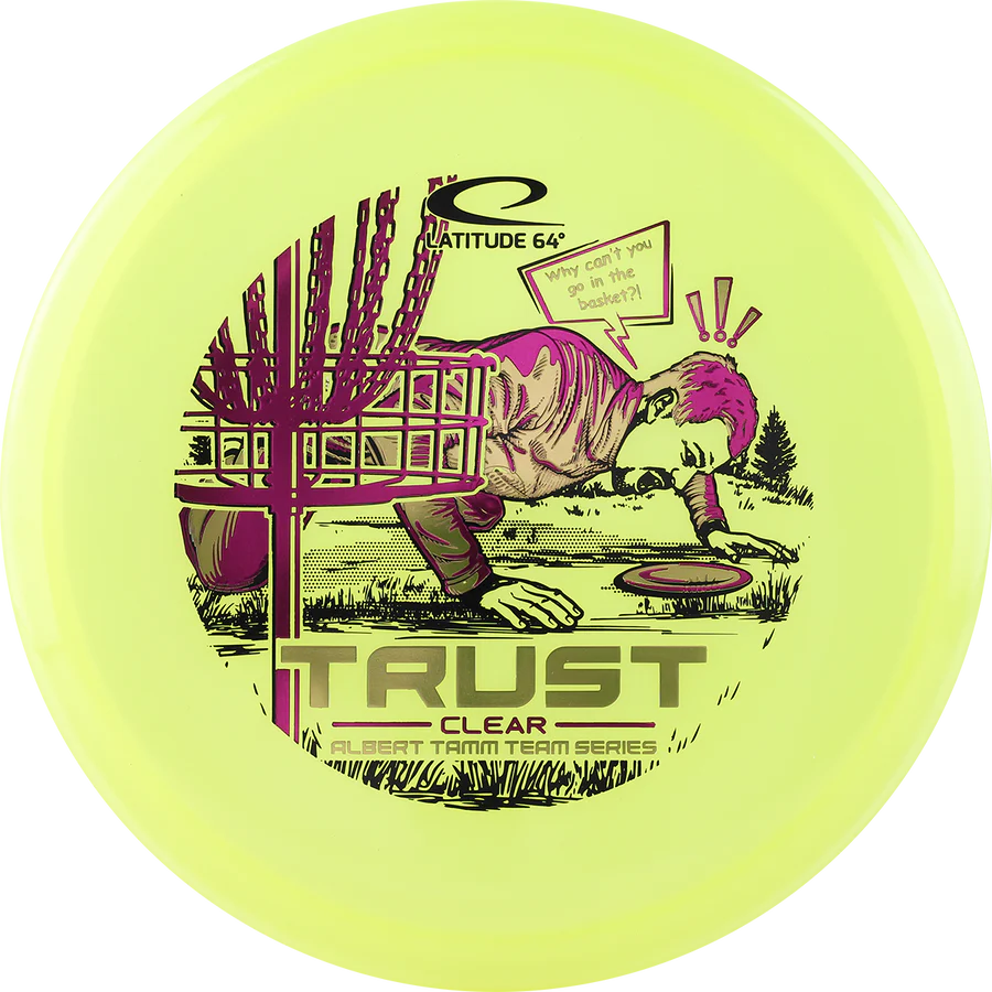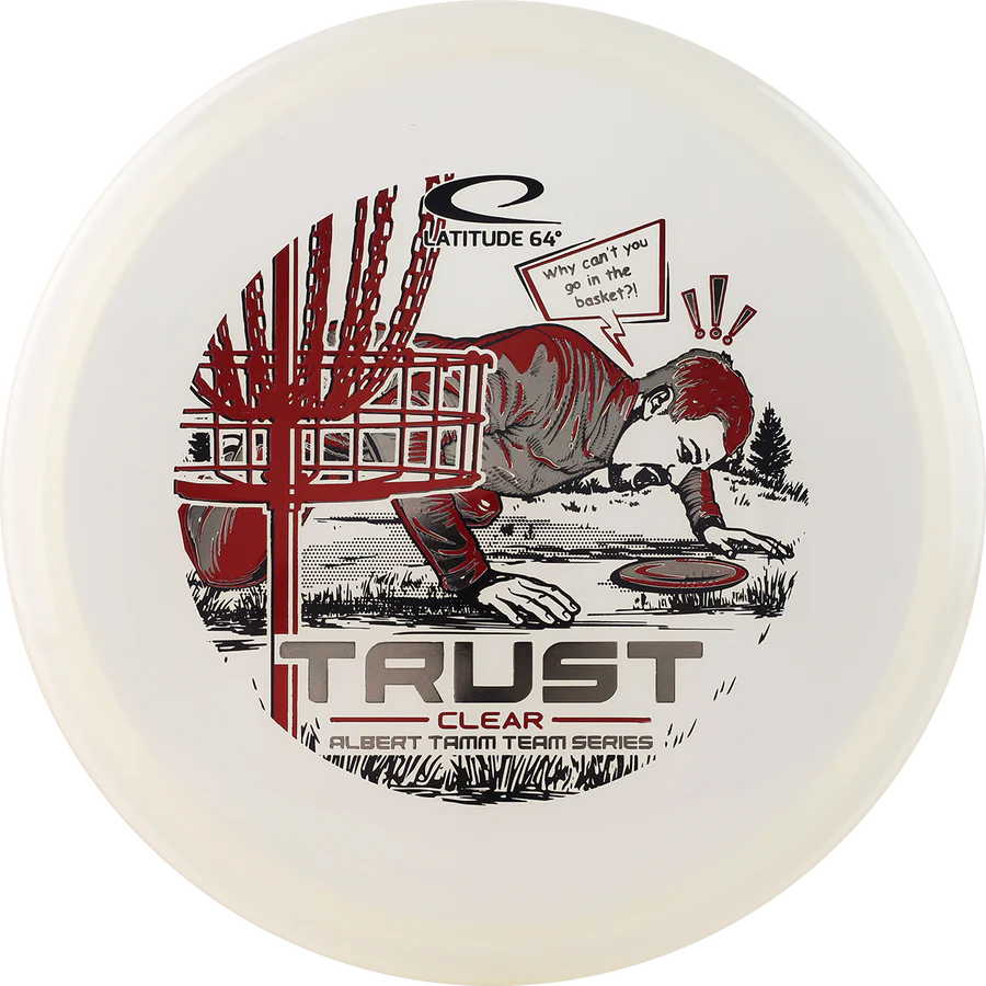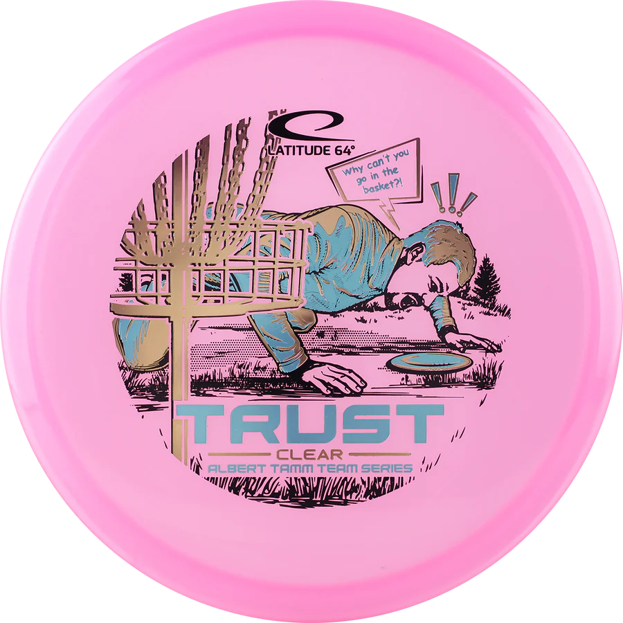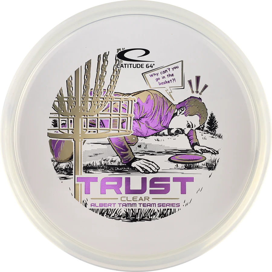 The Trust is a reliable workhorse midrange built for control and confidence. Thrown with power, it flies straight and stable, while slower shots finish with a smooth, gliding fade. Its beadless, smooth rim makes it a great choice for both backhand and forehand throws.