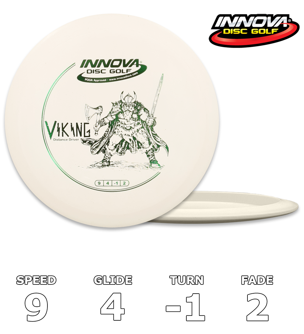 The Viking is one of our most versatile distance drivers from start to finish. The Viking is a long straight flyer with a very predictable fade at the end of the flight. This is an excellent disc for throwing both side arm and backhand shots due to its easy grip and neutral flight. The Viking is perfect for holding long, line drive shots as well as graceful left or right turning shots.